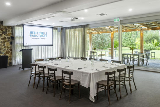 Set amidst Australian native flora and fauna, the Brolga Room with a private garden offers a unique space that blends rustic charm with modern amenities, including state-of-the-art audio-visual equipment.