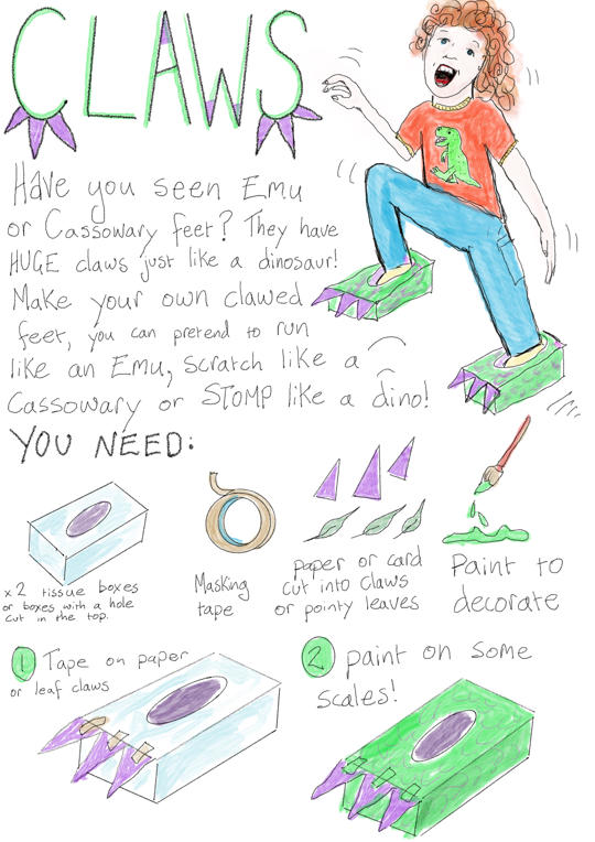 Pretend to be a dinosaur! Why not add claw feet and a tail to really become a dinosaur!